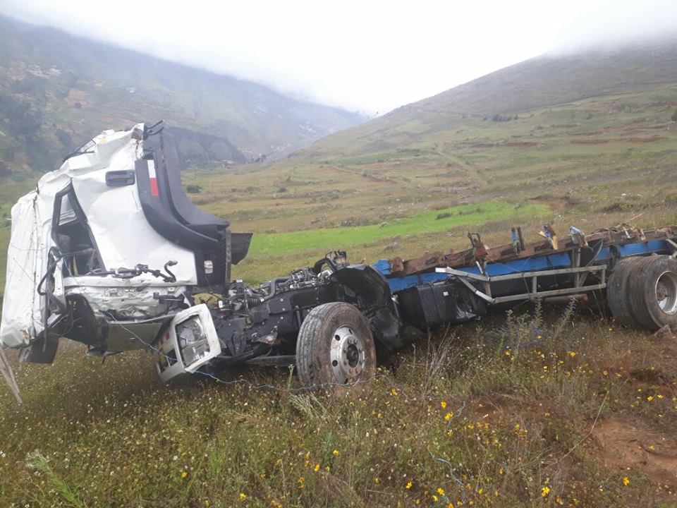 Trágico. Una falla humana en la estrecha carretera de la ruta Maco – Tapo ha ocasionado el despiste y volcadura del camión Isuzu blanco de placa W5O-744, cargado de papas y de personas en la tolva. Tremenda negligencia.